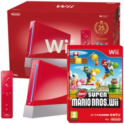 Nintendo Wii Rouge : Pack New Super Mario Bros. Wii + Wii Sport - Edition Limitée 25e Anniversaire Mario 🕹️ Console | EUR | 📦📄➕ |