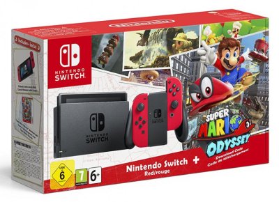 Nintendo Switch avec Joy-Con (rouge) + Super Mario Odyssey - Edition Limitée (Code téléchargement inclus) 🕹️ Console | — | 📦📄➕ |